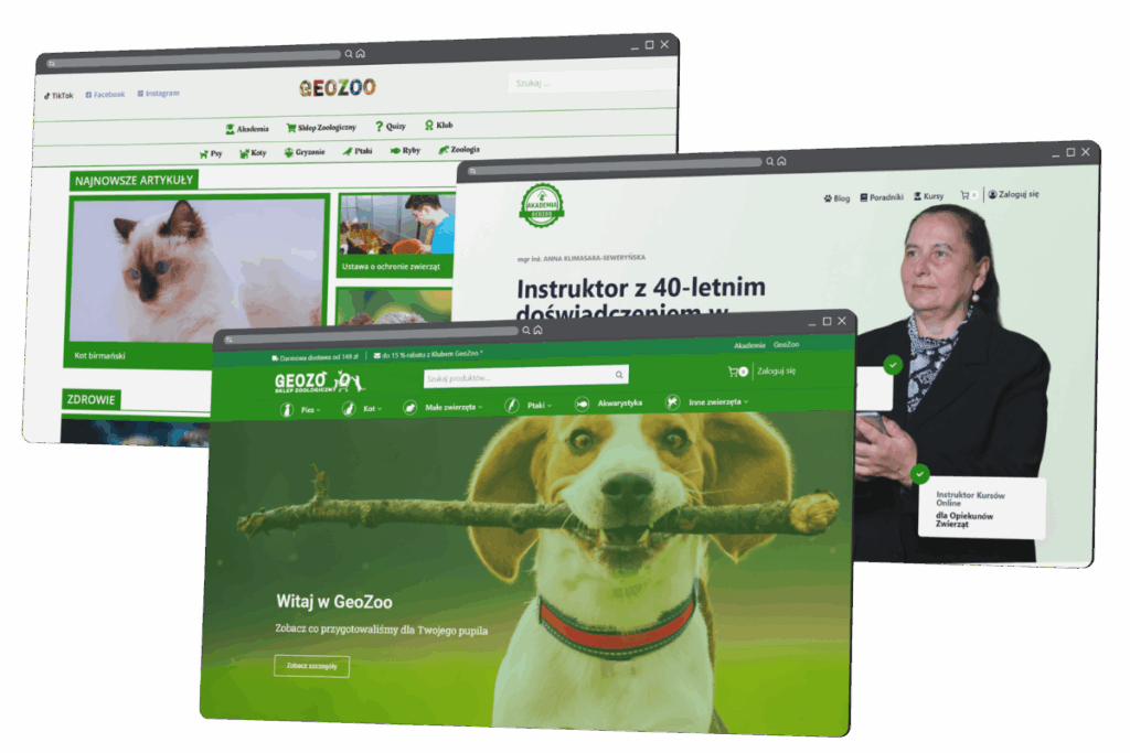 Nie jesteśmy tylko twórcami stron, jesteśmy praktykami. Od 2020 roku prowadzimy własny portal o zwierzętach geozoo.pl, który każdego dnia dostarcza użytkownikom wartościowe treści i stale się rozwija: platforma szkoleniowa, sklep zoologiczny. Dzięki temu doskonale wiemy, jak działa prawdziwy portal od technicznej strony, przez redakcję, aż po promocję i monetyzację. To właśnie to doświadczenie przekładamy na każdy projekt, który realizujemy dla naszych klientów.