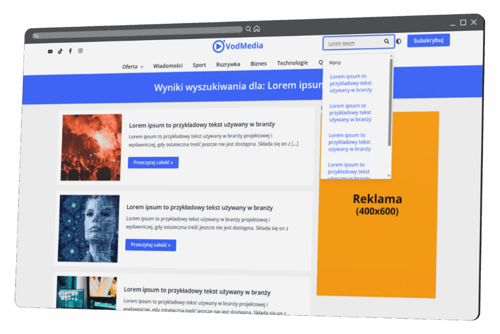 Twój portal otrzymuje wydajną i inteligentną wyszukiwarkę artykułów, która pozwala użytkownikom błyskawicznie znaleźć to, czego szukają. Wystarczy wpisać słowo kluczowe, temat lub nazwisko, a system natychmiast wyświetli najtrafniejsze wyniki.