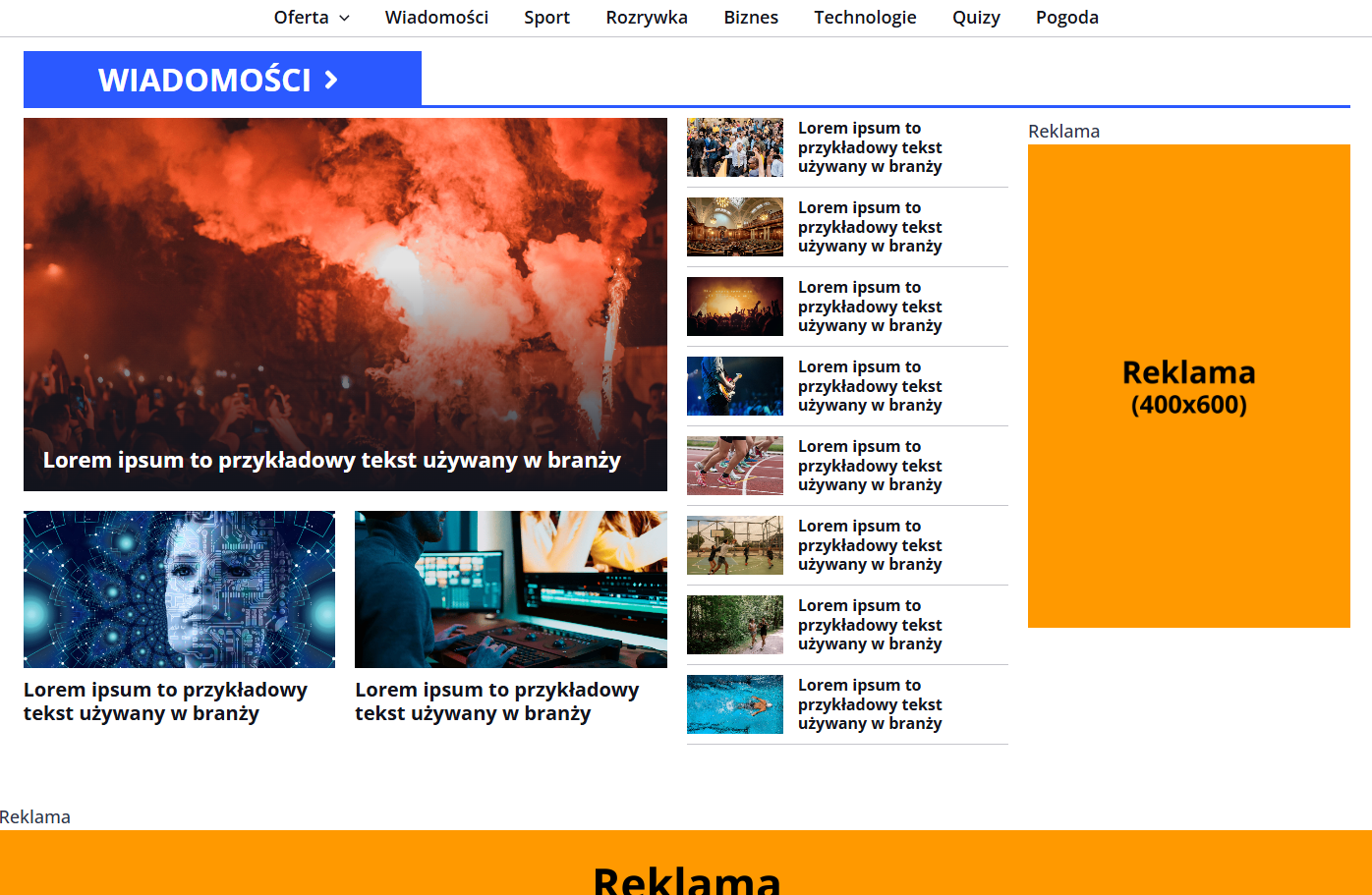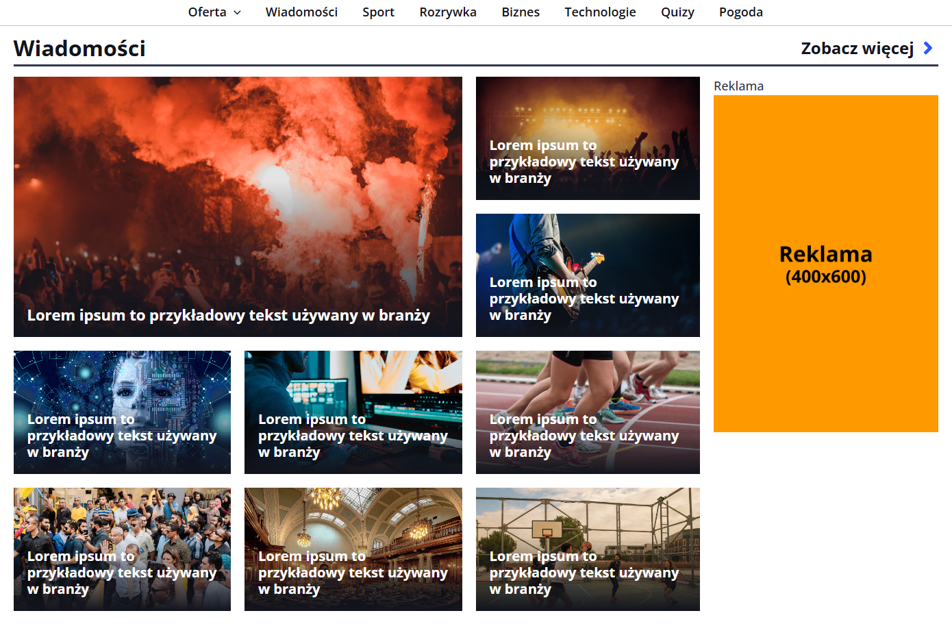 Dzięki niemu użytkownik ma natychmiastowy dostęp do najważniejszych sekcji portalu: wideo, sklep, quizy, pogoda, itp. To nowoczesne rozwiązanie, które zwiększa komfort korzystania z Twojej strony i sprawia, że użytkownicy chętniej wracają.
